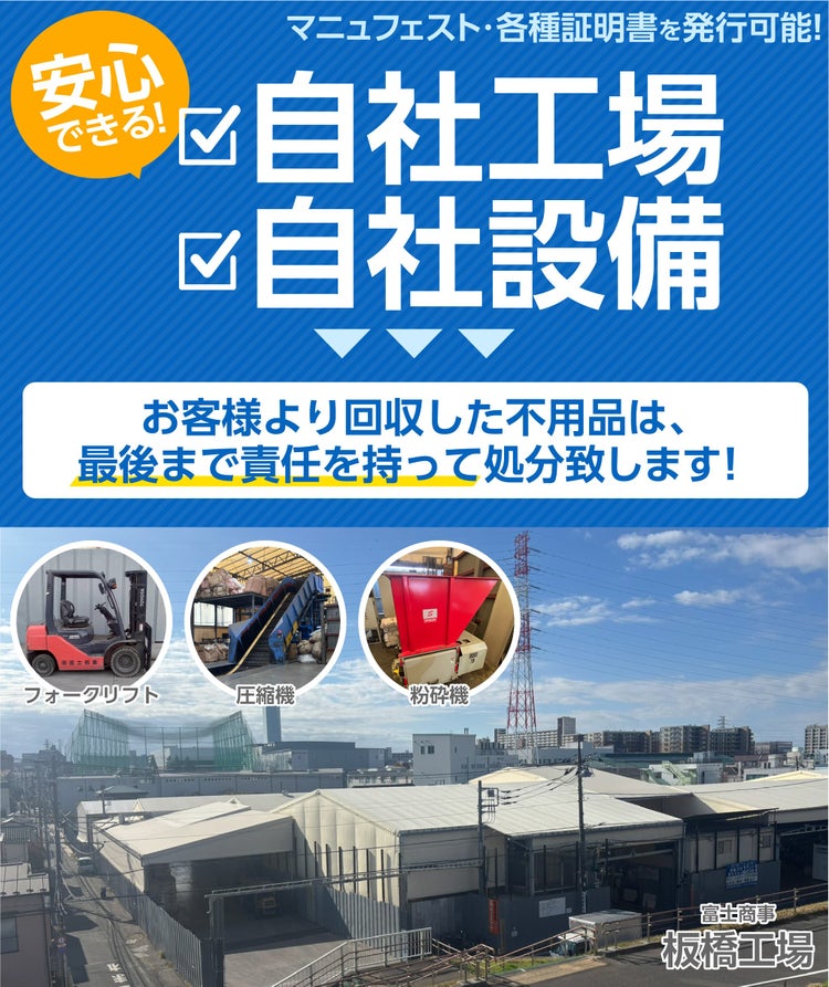 富士商事のお片付けサービスでは、適正価格・適正処理を徹底し、安心してご利用いただける不用品回収サービスを提供しています。 お困りの際は、どうぞお気軽にご相談ください。
