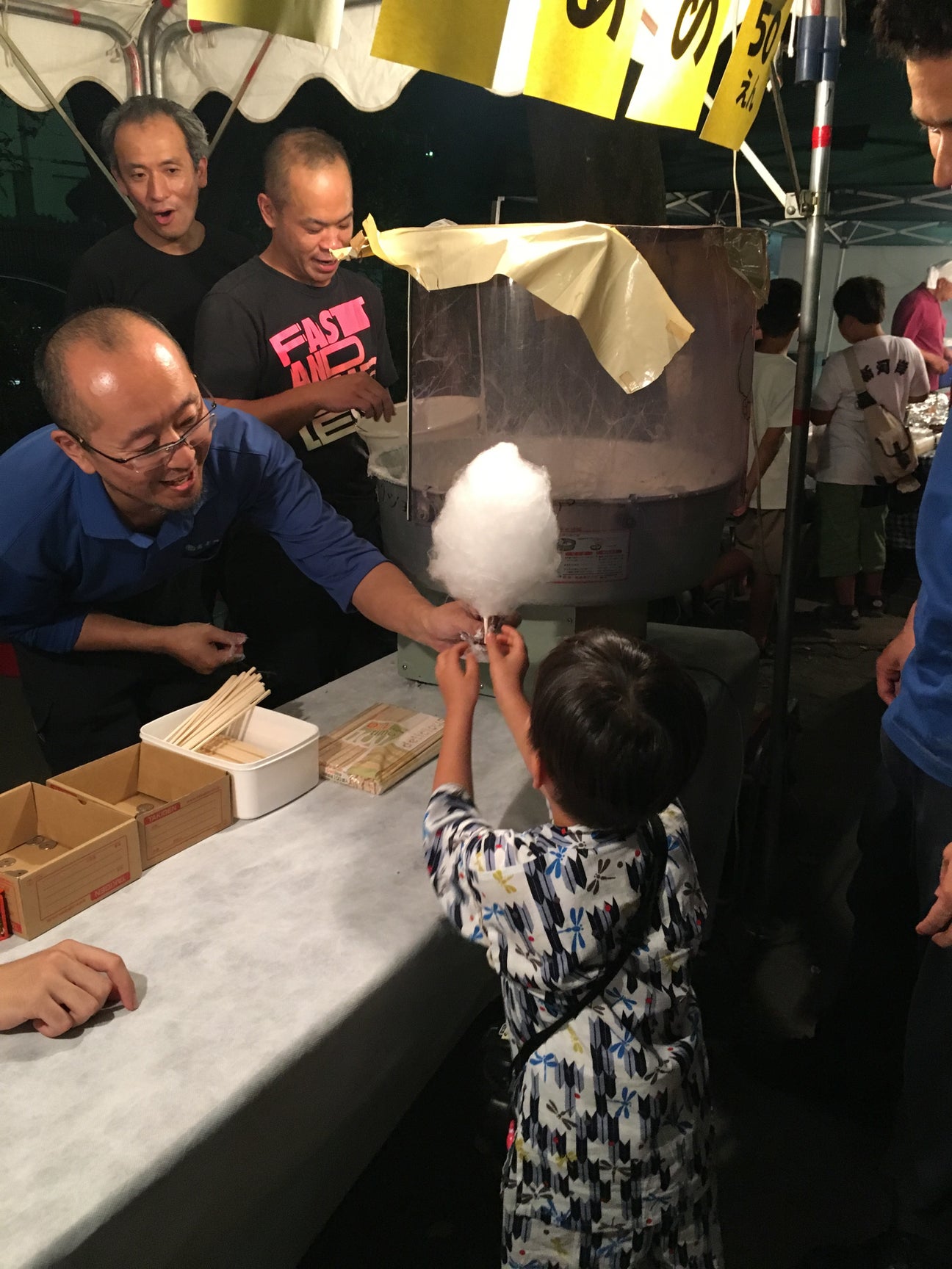 板橋区のお祭りに地域貢献として参加しました。わたあめのふるまいと、ごみ箱用ダンボールの提供を通じて、地域のみなさまと温かい交流ができました。