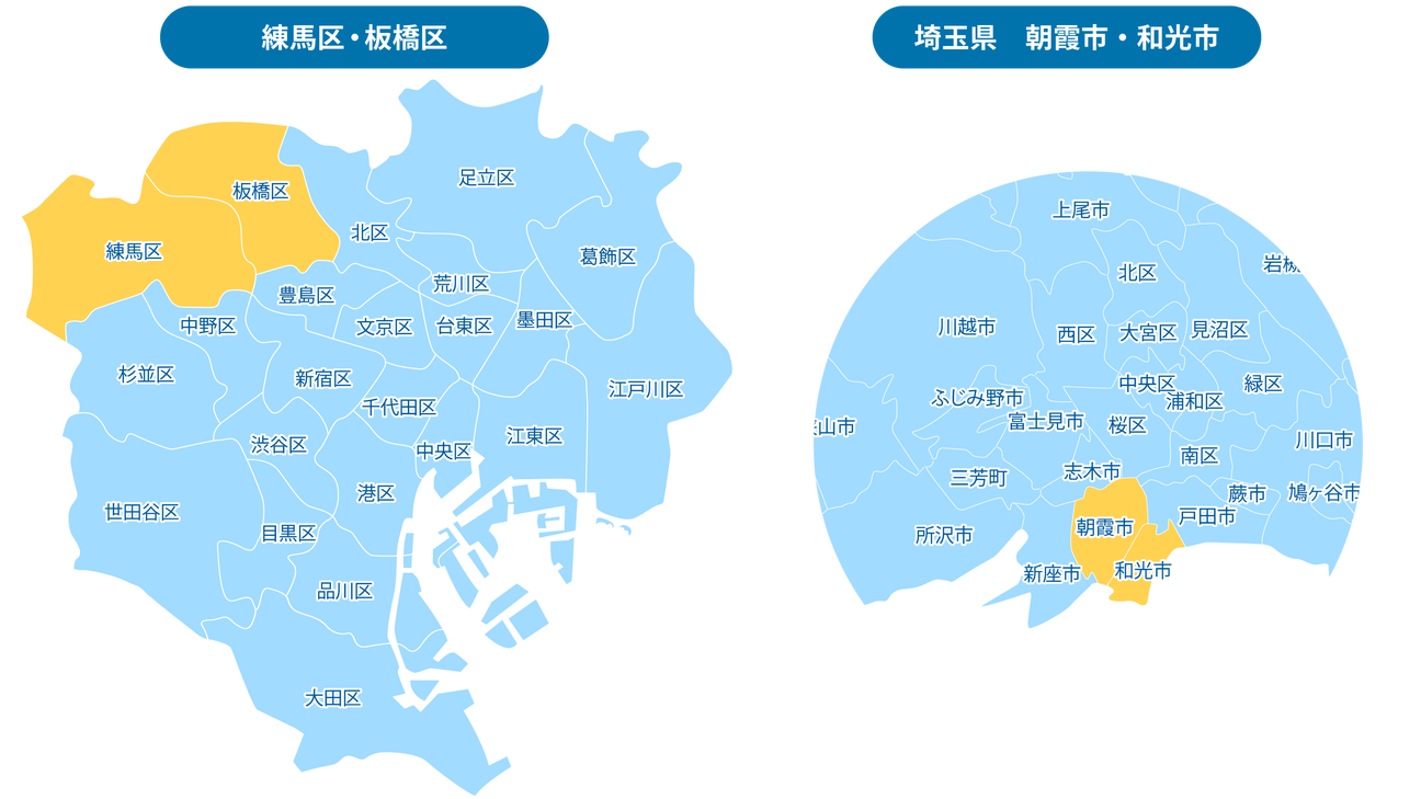 光が丘、北町、旭町、土支田、大泉全域、谷原、春日町、平和台、錦町、氷川台、豊玉など
