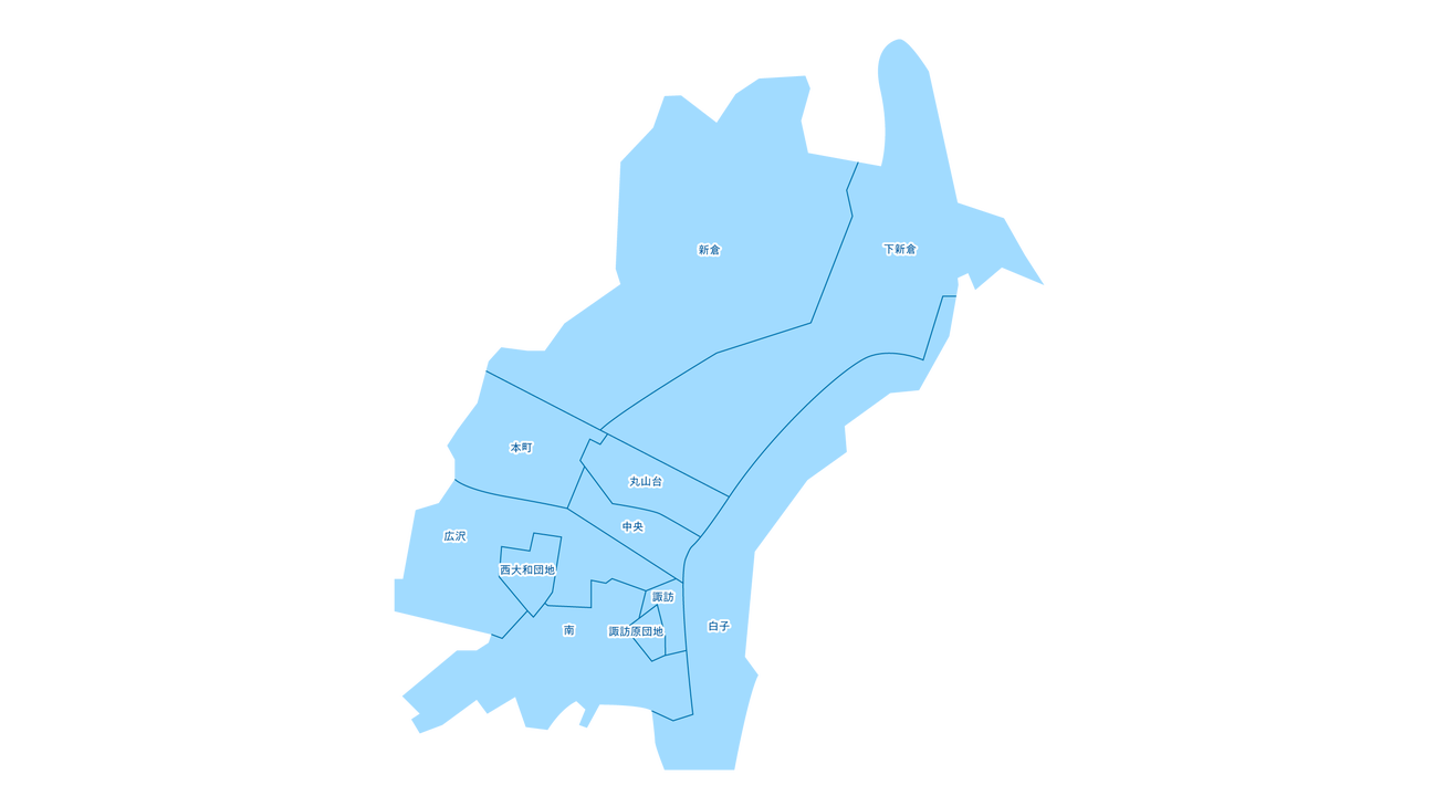 白子、新倉、下新倉、本町、丸山台、中央、南、諏訪、広沢など