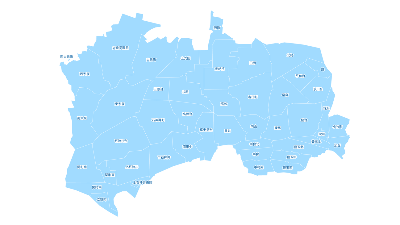 光が丘、北町、旭町、土支田、大泉全域、谷原、春日町、平和台、錦町、氷川台、豊玉など