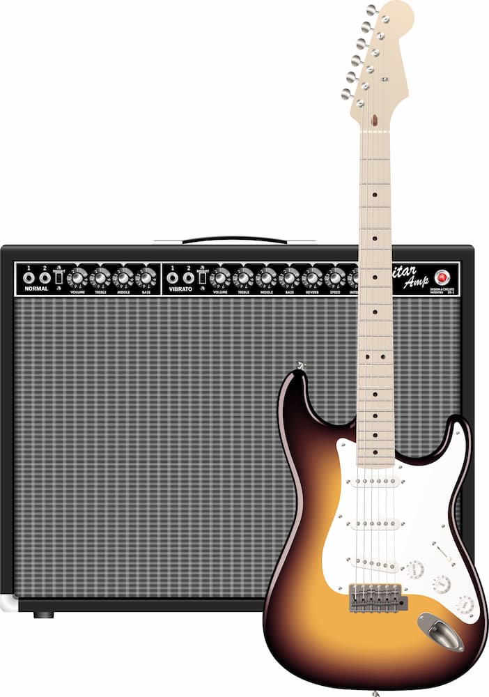 ピアノ、ギター、ドラム、アンプ、スピーカー、オーディオ機器