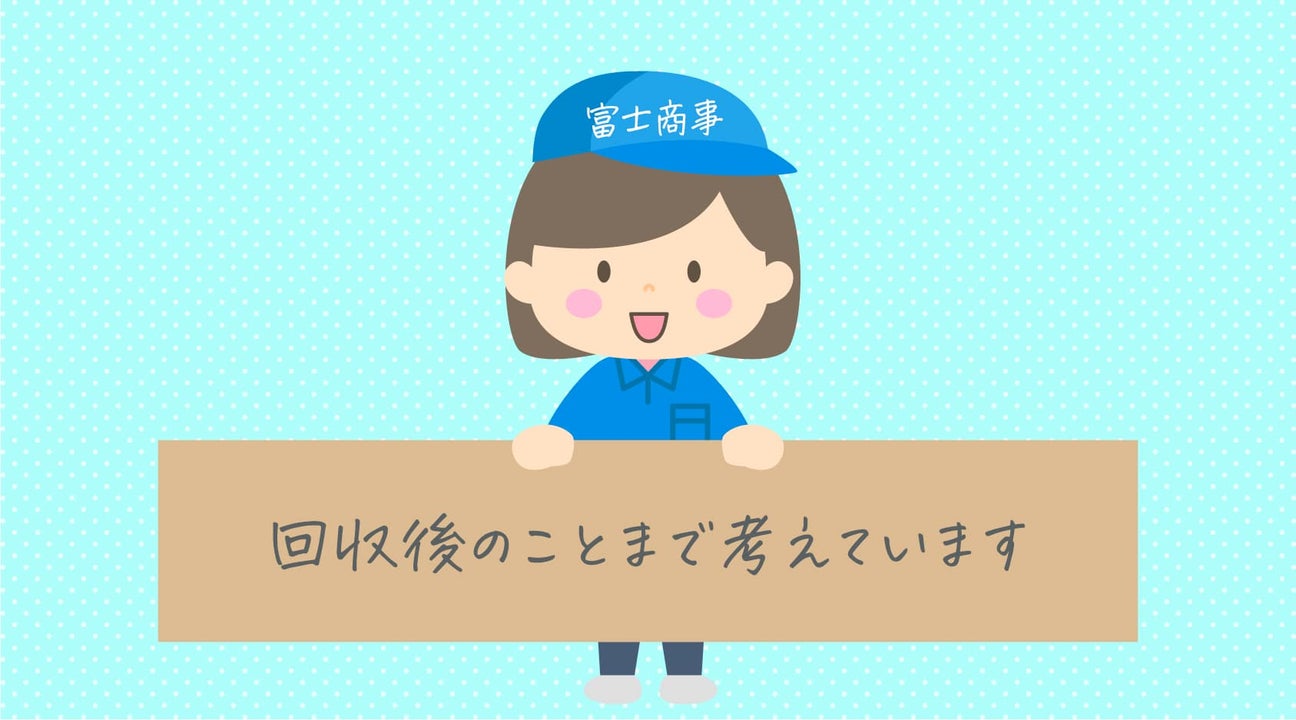 回収させていただいた不用品は全て自社工場で処分の工程を踏ませていただくことで、リサイクルや処理など適切に対応させていただきます。プライバシーに配慮し、回収後のことまで考えて作業を進めさせていただきますので、ご安心ください!